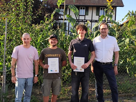 Von links nach rechts: Martin Lauber (Ausbildner), Anica Lucy Aebischer, Nadine Alena Mauron, Philippe Frey (Ausbildner)